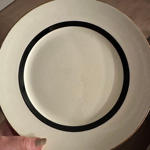 4 stk flat tallerken med tekst. D: 23 cm. Pris kr 200,- pr stk. Samlet for alle 4 kr 600,- så klikk på navnet mitt i annonsen