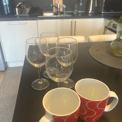 4 lekre glass fra tyske Rosenthal serien het Schneeblume. Disse glassene er over 40 år gamle, men nesten ikke brukt. De er nok til cognac, men også fine dessertskåler🍨17 cm høye👍