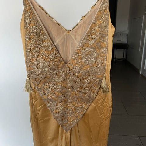 selger en fin festkjole (gown + sharara) i rød og sølvfarge