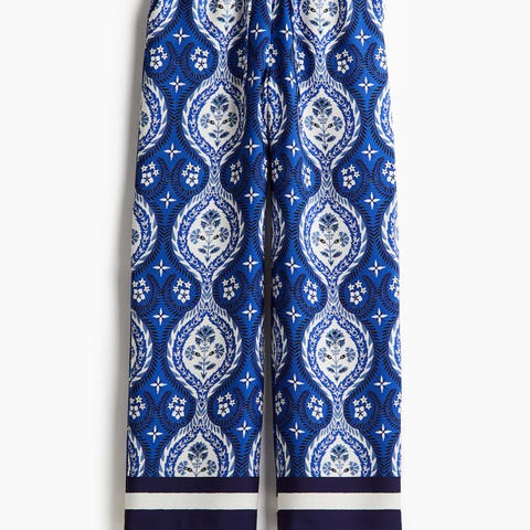 H&M Bukser i størrelse 34 med flerfarget mønster. Laget av 100 % viskose. Passer for kvinner. Buksen har et løst og komfortabelt snitt med et tropisk blomstermønster.