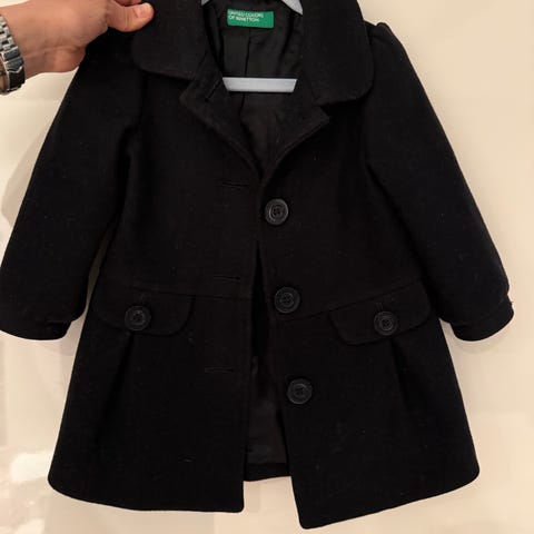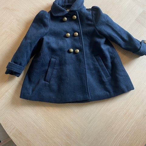Nydelig marineblå ullkåpe fra Patachou i str 86. Veldig lite og pent brukt. Ingen anmerkninger. Fra røyk- og dyrefritt hjem. Søte detaljer i fløyel.