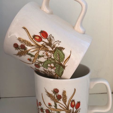 Vintage krus fra Staffordshire selges rimelig. 7,4 cm i diameter og 8,7 cm høyt. Pent brukt.