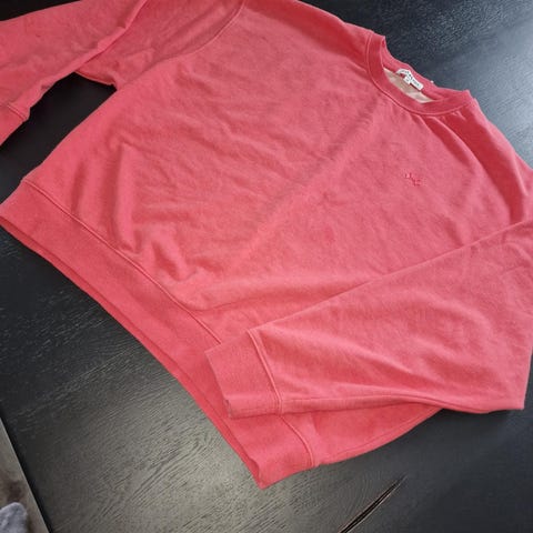 Lekker rosafarget genser, V formet hals. 47% ull, 53%bomull.