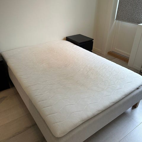 Dobbeltseng med innvendige mål 160x200cm. Passer til standar madrass-ramme Kjøpt på Italian House, Barlind heltre. Lett å montere. Gis bort uten madrass-ramme.