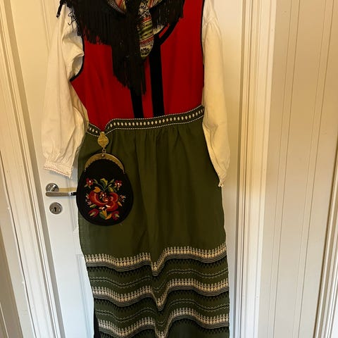 Tydal bunad med stakk, vest, jakke, veske og to skjorter pluss skjerf. I god stand. Kan pakkes og sendes.