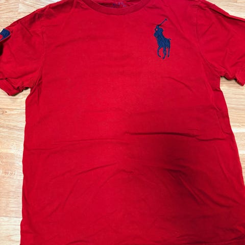 Hei! Selger en versace polo t-skjorte som er pen brukt ig er i nesten ikke brukt str, er c.152 for gutter i 12 til 13 år. De står 14 år men er litt lite.