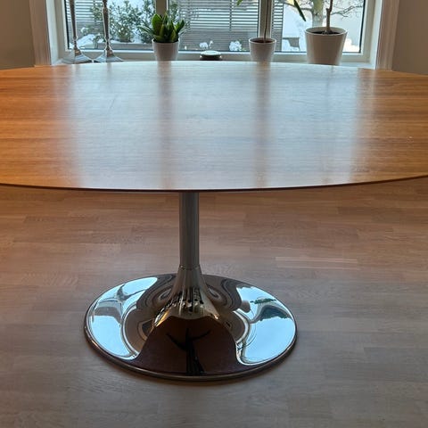 Bolia: Svart spisebord i fenix laminat topp og svarte stålben. Størrelse 240 cm, men plass til 10 personer. Bordet kan hentes i Bergen.