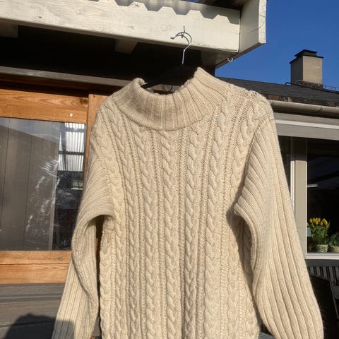 Beige hjemmestrikket genser i str. M. Kun brukt et par ganger.,