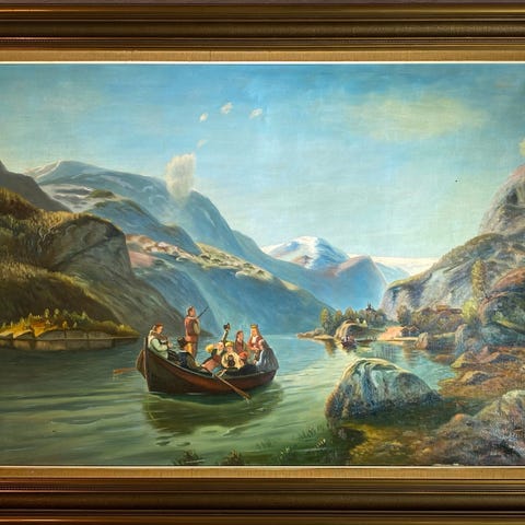 Gammelt, rolig oljemaleri med ny ramme. Med dette på veggen kan du "gå tur i skogen" hver dag☺️ Yttermål ramme: 68 cm x 56 cm.å