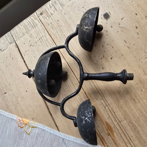 Fangstredskap fra tidlig 1900 tallet. Ble forbudt i 1936. Malt sort. Metallet er i god stand.
