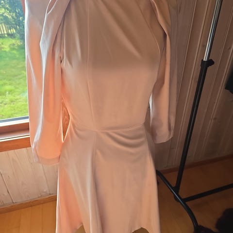 Pen blonde kjole i beige med sort innsydd silke bond. Silikon innlegg rundt brystet. Fra H&M.