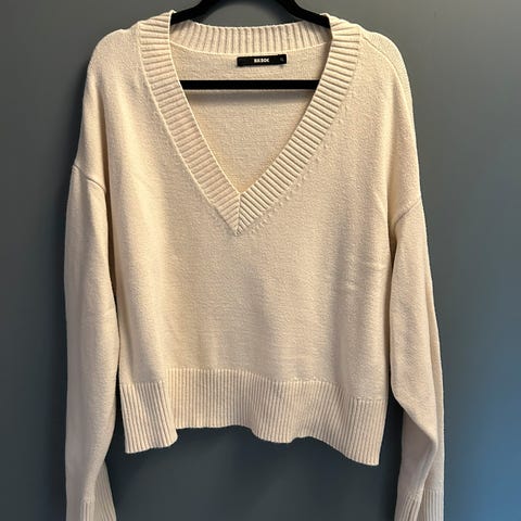 Bik Bok genser i størrelse XL for kvinner. Genseren er grå og laget av 52% viskose, 28% polyester og 20% polyamid. Kan vaskes ved 30 grader.