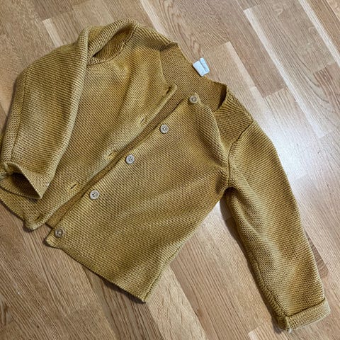 H&M barnejakke i størrelse 92 for gutt. Jakken er grå og har knappelukking foran. Den har detaljer som albuelapper og to lommer foran. Jakken er laget i et materiale som gir en klassisk og enkel stil.