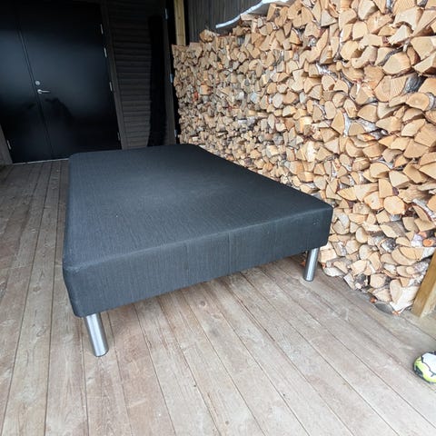 IKEA enkeltseng med mål 90x200 cm. Madrass, overmadrass og sengehest kan medfølges hvis ønskelig. Släkt senga kan bygges på med skuffer og ekstraseng