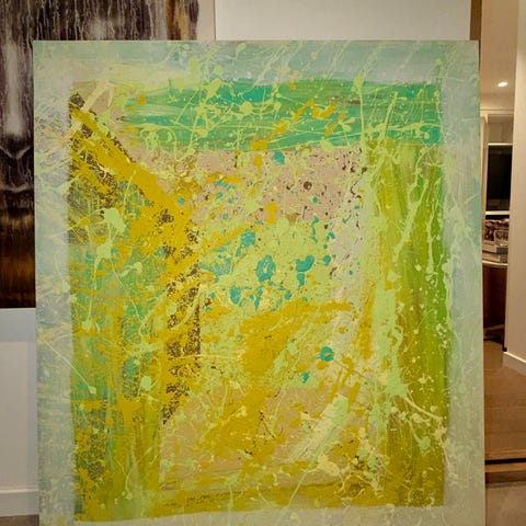 Oljemaleri av Inga Helene Øgrey. Rift i lerret ca 4 cm, tapet på baksiden. Ellers i god stand. Hennes Facebook side:
