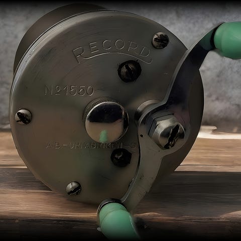 Gammel multiplikatorsnelle RECORD FLYER 3000 Mod. C - AB Urfabrikken Sverige - dette er en både fiskesnelle og konkurranse snelle fra 1950/60 tallet - produksjonsnummer 2659.