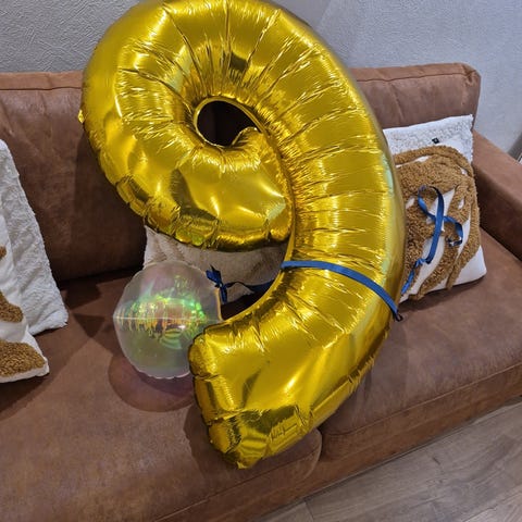 En uke gammel gassballong ca 60*60*30 Cm. God oppdrift, ser ikke slapp ut enda.