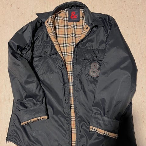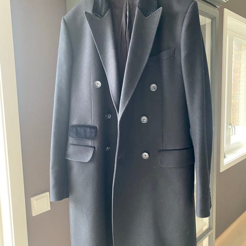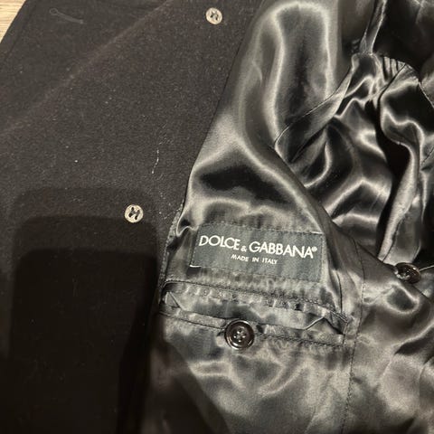 Dolce & Gabbana kåpe i størrelse 50 farge grå. Var hull i bege lummenene men har sydd de slik at det ikke er hull.
