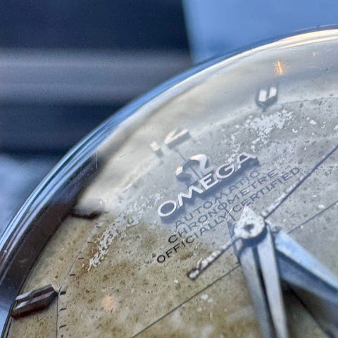 Datofunksjon fungerer som den skal, klokken har også quickset funksjon av dato. Pent originalt glass fra Omega. Kronen er byttet ut ved service.