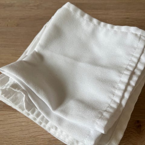 Dukene er brukt en gang, og er nyvasket, flekkfrie og like fine som nye.