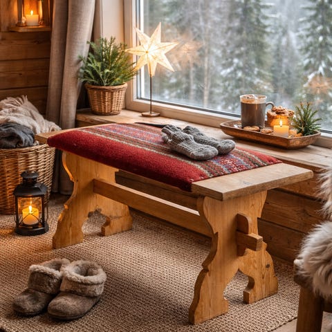 En tung og solid furu krakk/ fotstøtte med et fint blomster trekk… perfekt for hytte eller annen bondestil.