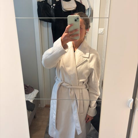 Ullkåpe i offwhite fra Bikbok selges, Str. S