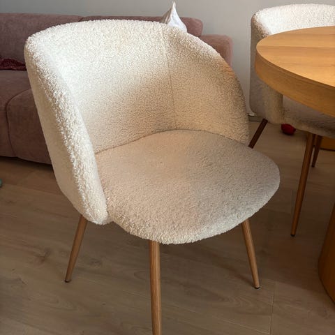 Vi har 4 håndlagde spisebord-stoler fra et dansk møbelsnekkeri til salgs. Stolene var ny i 2005. De har fått nytt setetrekk siden da.