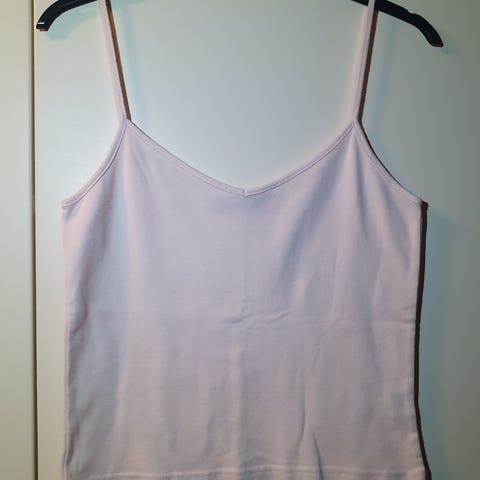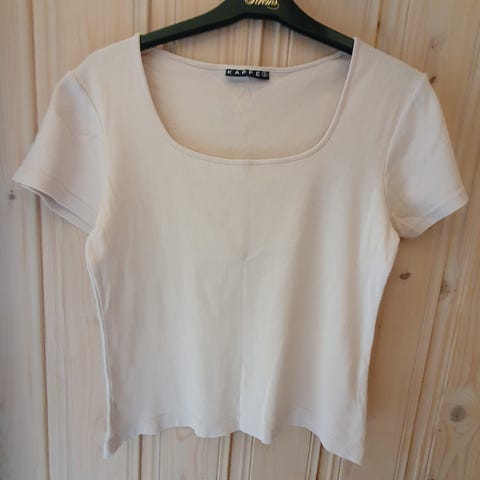 Lys grønn beige topp med korte armer og rund hals.