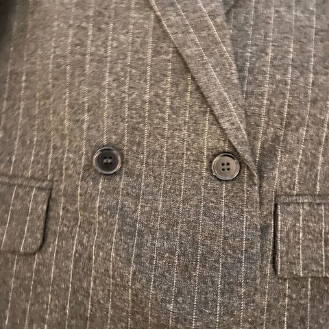Pent brukt dressjakke / blazer fra Divino clothing str 40 (M-L). Elegant blå med litt grått i med hvite striper. 55% lin, 45 % bomull.