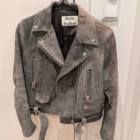 Acne Studios Andre jakker i svart farge, størrelse S for kvinner. Jakken har et stort krageparti i pelskvalitet, glidelåslukking foran, flere lommer med glidelås og belte i livet. Materialet er skinn med pelskant, som gir jakken et robust og varmt design.