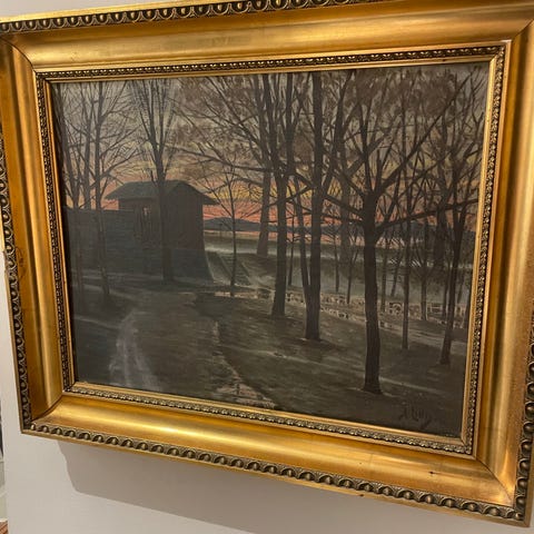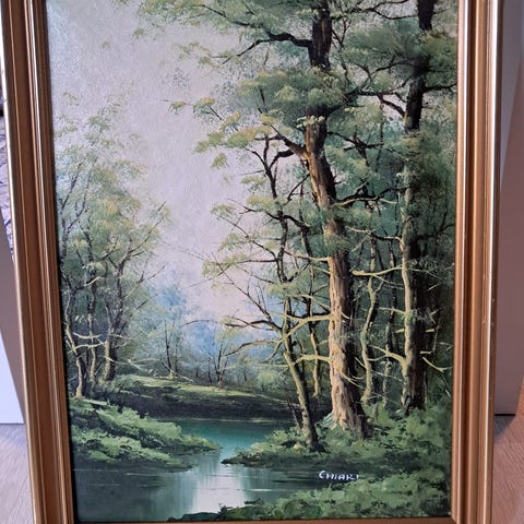 Veldig fint signert oljemaleri på plate, Tror det står R. Hagen 1958.