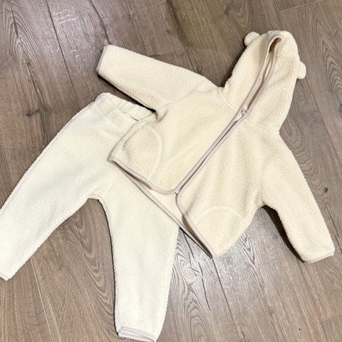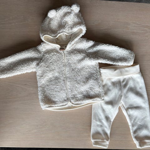 Søt hettejakke og bukse i fleece.