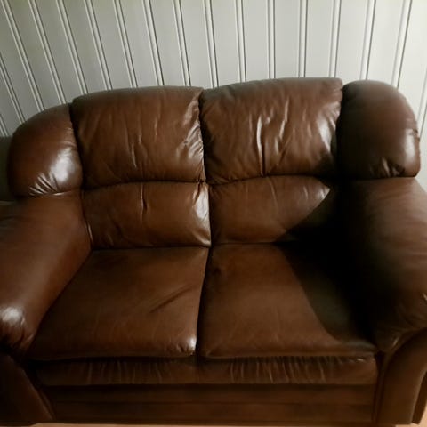 Pent brukt skinnsofa.