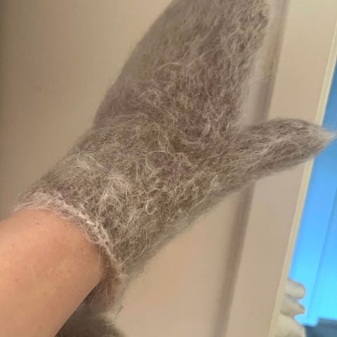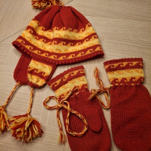 Pent og varmt sett som består av lue, votter og pannebånd.