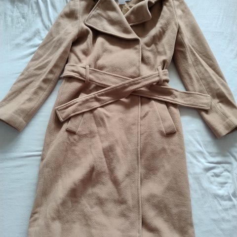 & Other Stories Gul kåpe i størrelse S, designet for kvinner. Kåpen har et rutemønster og er laget av et materiale som gir struktur og varme. Egnet for bruk i kaldere vær.