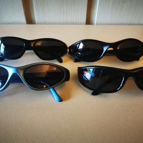 4 Barne solbriller. 2 er i god tilstand, en er litt skrapet og en er veldig skrapet (kan være reserve). Du kan se på bildet mot lyset tilstanden av ‘glasset/plastikken’.