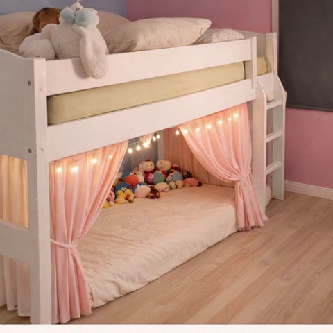 Åpen takkonstruksjon for hobbyaktiviteter: Den åpne takkonstruksjonen gir uendelige designmuligheter, slik at du enkelt kan henge dekorasjoner eller feste et leketelt for å skape et virkelig magisk og personlig rom.