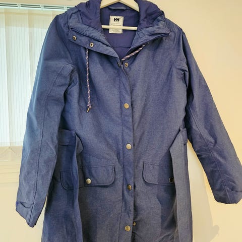 Helly Hansen vinterjakke i blå farge, størrelse M for dame. Jakken har hette og er designet for utendørs bruk. Materialet og detaljer er tilpasset for beskyttelse mot værforhold. Pent brukt.