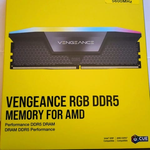 Nesten nye corsair ddr5 ram brikker 2x16 GB i hvit farge med rgb belysning.
