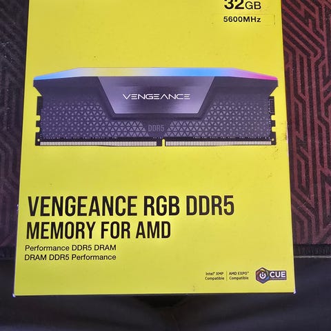 Nesten nye corsair ddr5 ram brikker 2x16 GB i hvit farge med rgb belysning.