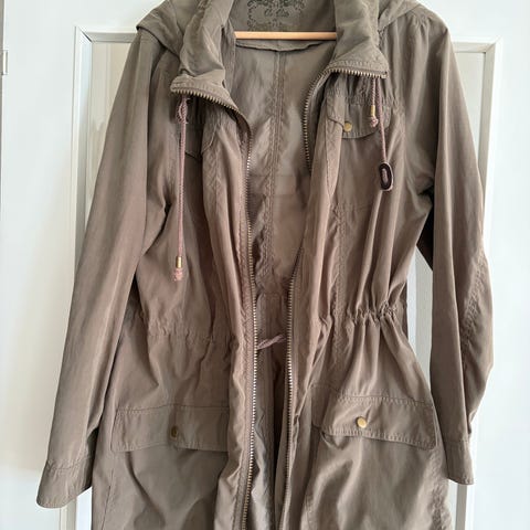 Selger en fint brukt parkas/høstjakke fra H&M i str 52. Mange kjekke lommer og muligheter til justeringer med snører.