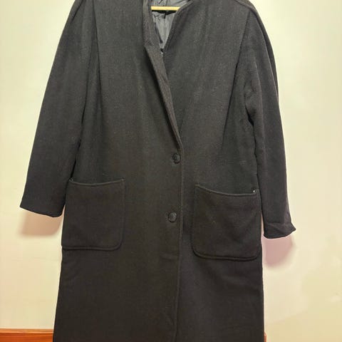 Kåpen er i 50% ull og 50% polyester, og brukt få ganger.