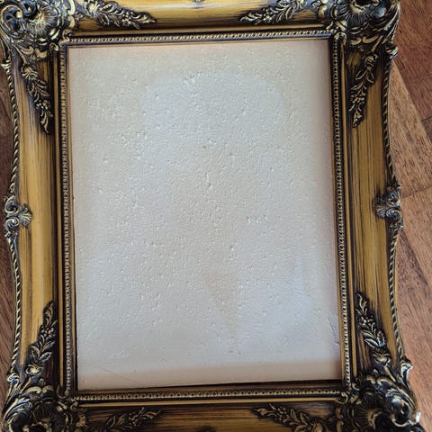 Stor, tre ramme, gul malt med kjempe fin patina efekt (vin rød under maling - se på bilder). Tung og i perfekt stand. Passer ikke hos oss lenger og var egentlig aldri brukt hos oss. Letter etter nytt hjem :)