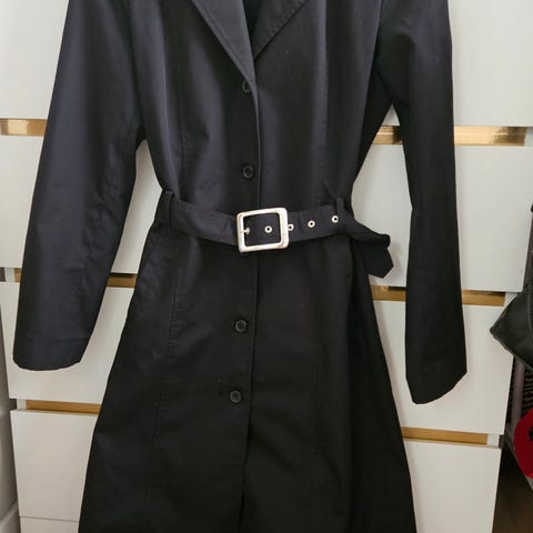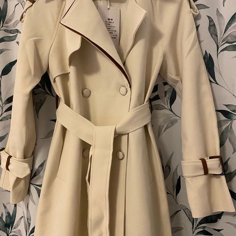 Pent brukt tynn trenchcoat fra BikBok. Kåpen har bånd til knyting i livet, og to lommer.