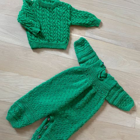 Håndlaget strikket kostyme til nyfødt baby, perfekt til fotografering eller som gave.