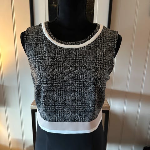 Joseph Ribkoff kvinne kjole i størrelse S/M, svart farge. Kjolen har et asymmetrisk design med lengre bakside.