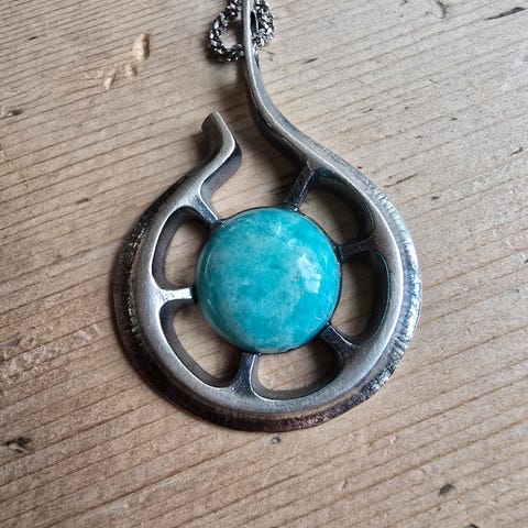 sølvkjede med 8 turkiser og 3 ekte smykkestener
