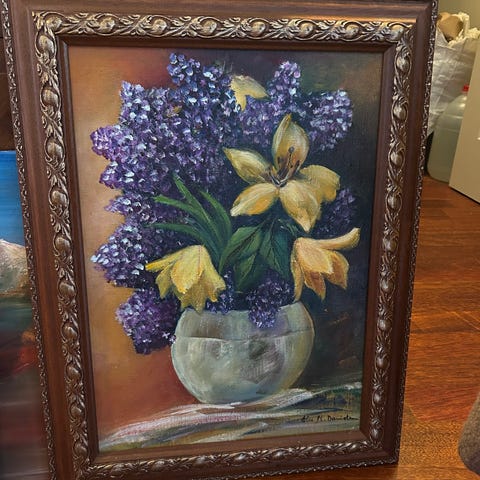 A. Hansen & Søn Oval Brodert Blomsterbilde med Gullramme