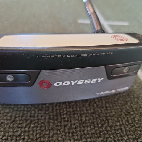 Selger en tilnærmet ny Odyssey double wide Trihot 5K putter med splitter nytt superstroke fatso 2.0 puttegrep
