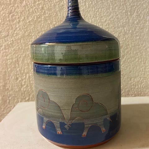 Dette er et veldig røft og kult fat i keramikk, med insektmotiv. Jeg er usikker på om det skal være en flue eller en mygg, men det spiller knapt noen rolle. Det er et virkelig blikkfang! Jeg har dessverre ikke funnet ut hvem opphavspersonen er, men jeg tror signaturen under er «Tisijo 07»? Det tykke fatet i lyst gods står på to rektangulære ben. Ingen skader, krakelering eller nagg. Høyde: 4 cm. Ca. kvadratisk: 13x13 cm. Vekt: 355 g.